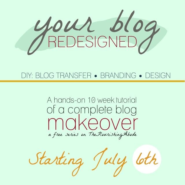 It’s a DIY blog redesign series! Basically, as a graphic designer I will be demonstrating how to do a complete blog makeove by taking a reader’s blog, overhauling it, and each week showing tips, how-to’s and instructions to also be able to conduct your own blog redesign. We’ll start from scratch on how to establish the look and branding you want to go for on your blog, and work all the way through to setting up or transferring a blog to WordPress, designing your blog to highlight rather than distract from your content, create a layout to encourage reader interaction, tools that can help boost your blog, and more. I’ll be posting each Friday for the 10 part series, Lord willing – it starts July 6th, and I’m so excited! If you’re a blogger, be sure to subscribe so that you won’t miss out on all the blog design tips.