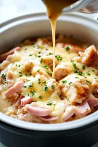 This Slow Cooker Chicken Cordon Bleu combines tender chicken breasts, savory ham, and melted Swiss cheese, all smothered in a creamy sauce and topped with buttery stuffing. It’s a comforting, fuss-free dish that’s perfect for busy days and delivers rich, satisfying flavors.