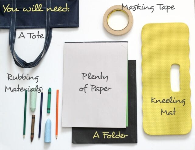– A Folder. Or something to put your finished rubbings in to prevent them from getting bent up and wrinkled.