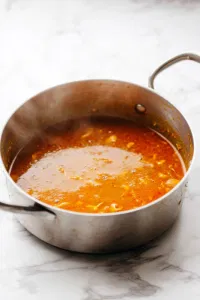 - Pour In the BrothAdd the chicken broth and stir until the curry paste dissolves.