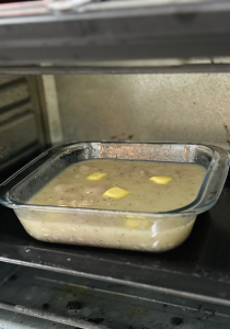 - Dot the top of the mixture with butter.