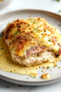 This one gives me that, creamy sauce, tender chicken, and those soft layers of ham and cheese that melt perfectly together.