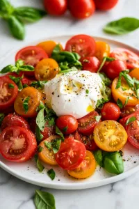 Even on days when I’m low on energy, I still want something that tastes bright and fresh. Tomato Burrata Salad gives me that.