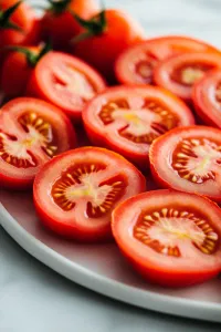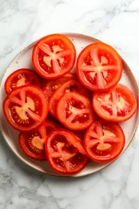 - Prepare the TomatoesRinse the tomatoes, pat them dry, and slice them into even rounds.