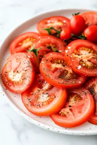 - Season LightlySprinkle a pinch of salt and pepper over the tomatoes so the flavor starts blooming.