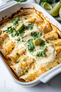 - Serving StepOnce the enchiladas come out of the oven, I let them rest for a minute so the sauce settles. Then I spoon a little extra sauce from the edges over the top before serving. A sprinkle of fresh cilantro or a light squeeze of lime adds the perfect brightness.