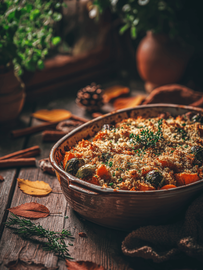 One of my favorite aspects of this casserole is the smoky, sweet flavor profile that develops from roasting the vegetables. Sweet potatoes become tender and slightly caramelized, while Brussels sprouts develop a nutty, crispy exterior. The melted cheese adds a gooey, savory layer that ties everything together, and the toasted breadcrumbs provide a satisfying crunch that perfectly balances the softness of the roasted veggies. Seasonings like sage, thyme, and smoked paprika deepen the fall flavor, but feel free to experiment with your favorite herbs and spices.
