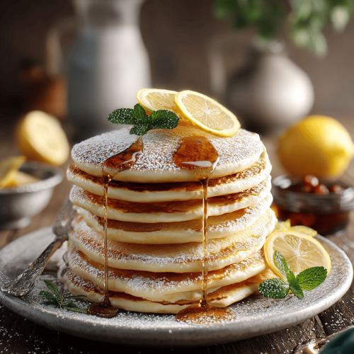 Vegan Fluffy Lemon Maple Pancakes