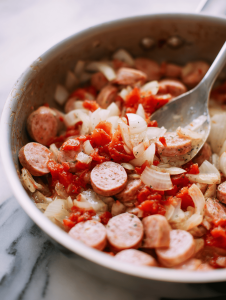 - Combine the drained pasta with the sauce and sausage fingers, tossing gently to coat everything evenly. The sausage pieces should look oozy and the sauce should shimmer with a smoky, tangy sheen. The aroma should be rich and inviting.