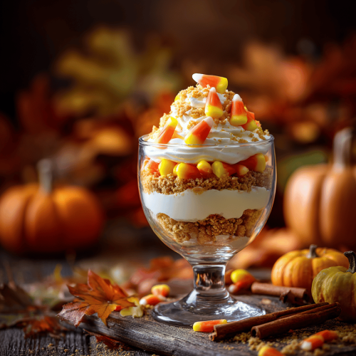 - Garnish each parfait with extra candy corn, sprinkles, or a drizzle of caramel, then chill in the refrigerator for at least 30 minutes to let the layers set and meld flavors.