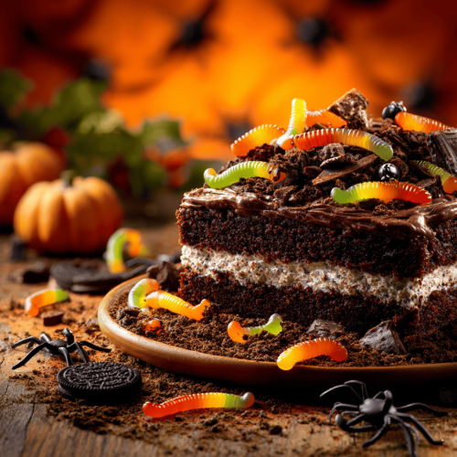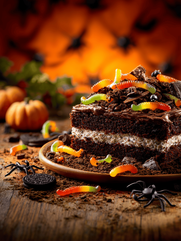 - Before serving, decorate the top with a few gummy worms for a spooky finish. Serve cold and enjoy the messy, chocolatey fun!