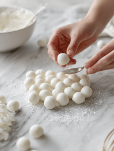 - Use a scoop to portion out small, even-sized balls about the size of a walnut, then roll them gently between your palms to smooth out the shape.