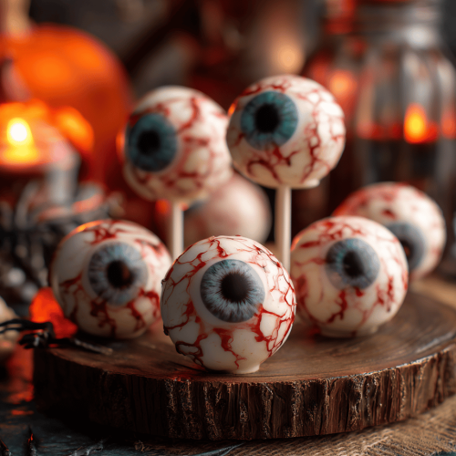 Let the eyeballs rest at room temperature for 10 minutes before arranging on a spooky platter. Add fake cobwebs or plastic spiders for extra effect. They’re best enjoyed within a few hours, as the coating can soften over time.