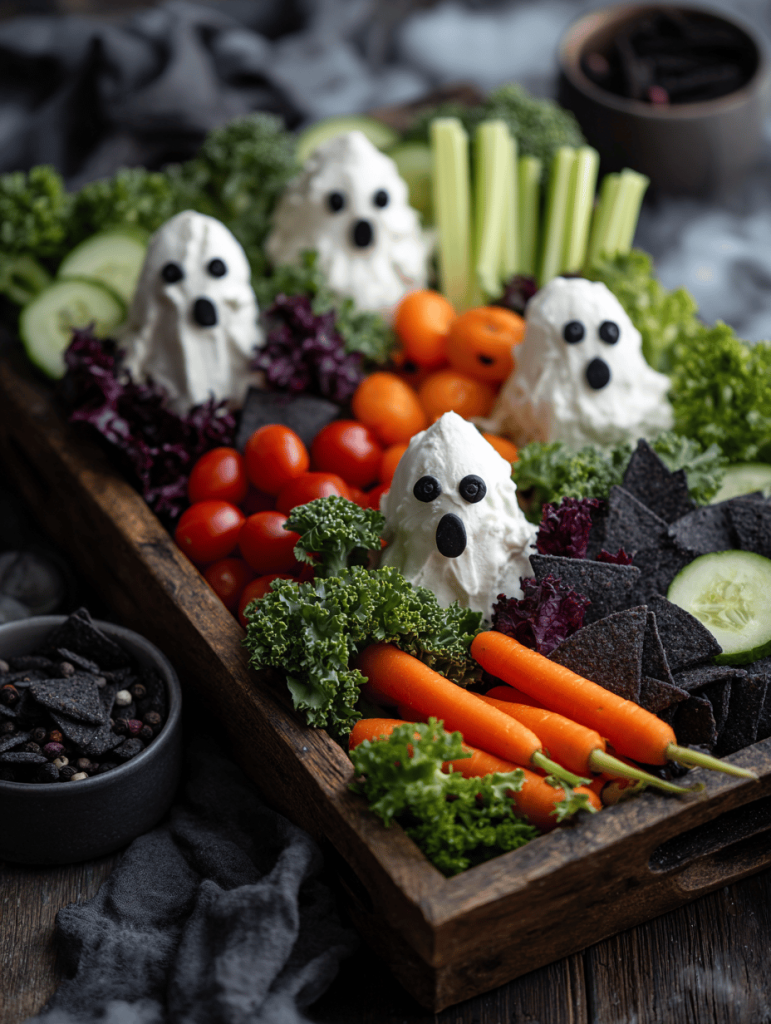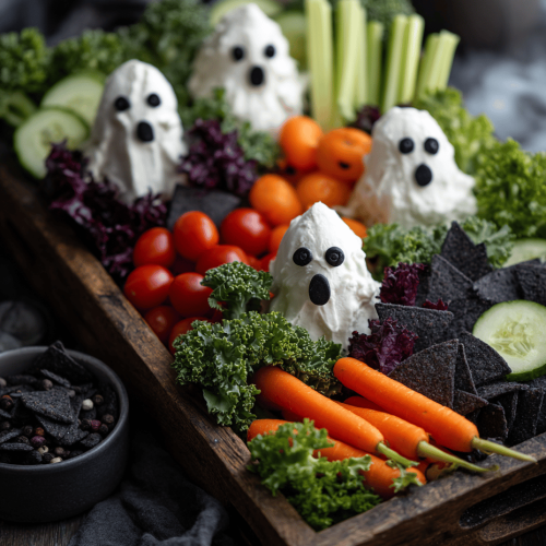 Sometimes, I get tired of the usual candy and pumpkin-shaped treats. This veggie platter feels like a quiet rebellion—no fuss, no sugar crash, just fresh, crunchy vegetables dressed up with a little creative flair. Plus, it’s perfect for sneaking in some greens while still having fun scaring the kids (and adults) with ghostly shapes.