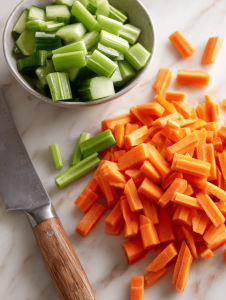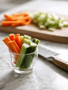 - Slice the carrots and cucumbers into long sticks about 4 to 5 inches in length, creating a uniform, crisp shape.