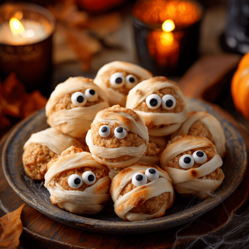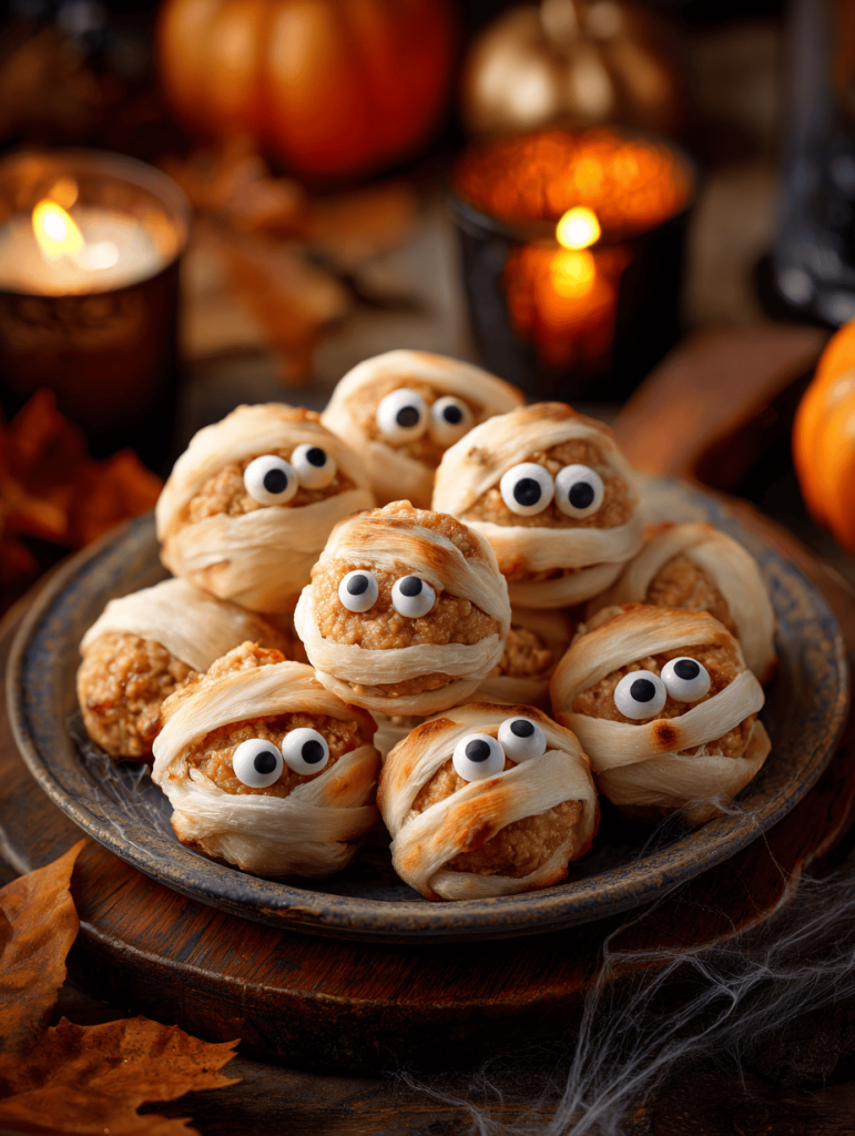 - Arrange the mummy meatballs on a spooky platter or in a bowl, and serve warm. Enjoy the fun chaos on your plate!