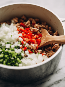 - Sprinkle in chili powder and cumin, then stir to coat the meat and veggies evenly. Toast the spices for about 30 seconds until fragrant, filling the air with smoky, earthy notes.