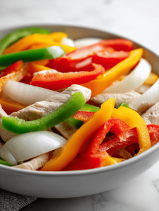 - Sharp knife & chopping board: To slice peppers, onions, and chicken evenly.