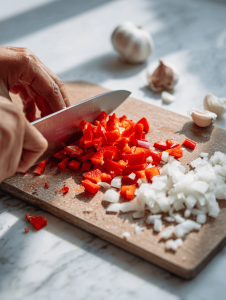 – Sharp knife & cutting board: For prepping herbs, onions, and meat.