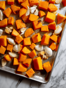 - Preheat your oven to 200°C (390°F). Spread the peeled and cubed butternut squash on a baking sheet, drizzle with olive oil, and sprinkle with a pinch of salt. Roast for 25-30 minutes until edges are caramelized and the squash smells nutty.