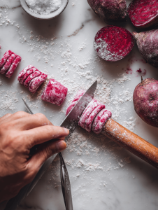Roasting beets gives them a caramelized, smoky sweetness that transforms this gnocchi into something more than just a potato dumpling. It’s a way to bring a burst of color and earthiness to a dish that’s usually pretty muted. Plus, it’s a fun way to make something vibrant without relying on artificial colorings.