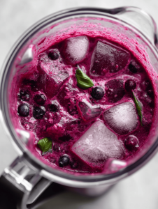 - Blend on high for about 30 seconds until the mixture is vibrant purple and fragrant with berry aroma.