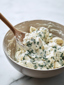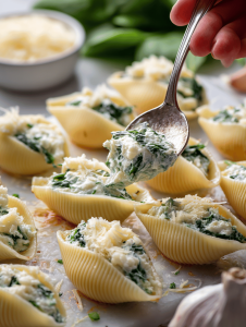 Step 4: While shells cook, prepare the filling: mix ricotta, mozzarella, chopped spinach, minced garlic, and a pinch of nutmeg.