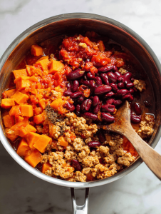 I’ve always loved the idea of transforming humble ingredients into something warm and satisfying. This fall, I’m obsessed with adding sweet potatoes to chili—an unexpected sweetness that cuts through the richness of the turkey. It’s a simple, honest dish that feels like a little celebration of the season.