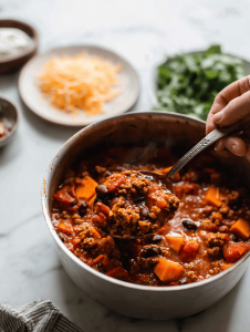 - Turn off the heat and let the chili rest for a few minutes to settle and deepen in flavor.