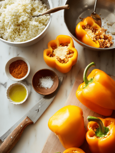 - Carefully spoon the filling into each hollowed-out pepper, pressing down slightly to pack the mixture in and ensure they look full and festive.