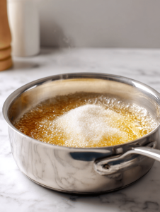 - Stir constantly as the mixture melts and begins to boil, releasing a sweet aroma and turning a golden hue, about 5 minutes.