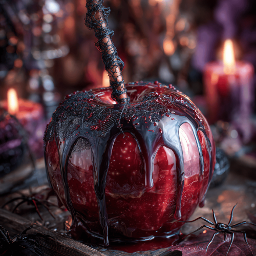 - Check that the toffee shells are fully hardened and shiny. Serve the Poison Toffee Apples on a platter, perfect for a spooky Halloween treat or a fun festive display.