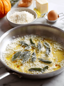 Step 6: In a skillet, melt butter over medium heat, add sage leaves, and cook until crispy and fragrant.