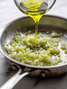 - In a large heavy-bottomed pan, heat the olive oil over medium heat. Add the diced onion and cook, stirring occasionally, until translucent and fragrant, about 5 minutes.