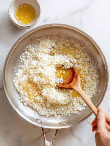 - Once the rice reaches the perfect al dente texture, remove the pan from heat and stir in the grated Parmesan cheese and lemon juice, mixing until smooth and creamy.