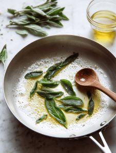 - Meanwhile, fry the sage leaves in a little oil until crispy and fragrant, about 1-2 minutes, then drain on paper towels.