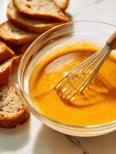 - Pour the custard into a shallow dish, creating a dip station for your bread slices.