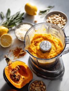 - Once the pumpkin is roasted and slightly cooled, mash or blend it until smooth. This will create a rich, velvety sauce base.