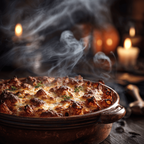 Baked ziti is a classic, but adding a spooky twist makes it more fun—especially when you’re craving comfort with a little edge. I love how the bubbling cheese and smoky sauce create a slightly chaotic, irresistible dish. It’s a perfect way to turn a simple pasta bake into a hauntingly good centerpiece.