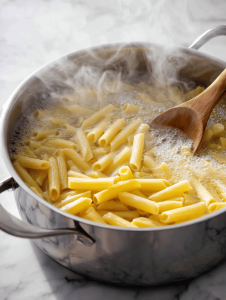 Step 2: Cook the ziti pasta in boiling salted water until just al dente, about 8 minutes.