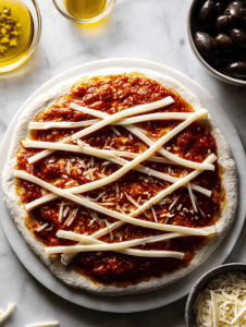 - Cooked sausage or pepperoni —: Thin strips that mimic mummy bandages, smoky and satisfying.