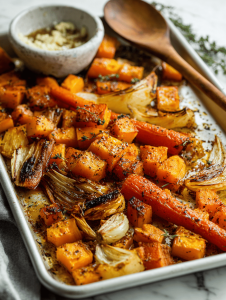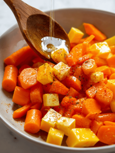 - Toss the chopped vegetables with olive oil, a pinch of salt, and a splash of maple syrup or honey for a touch of caramelization.