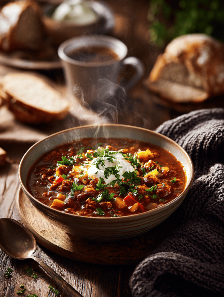 - Serve the hot chili in bowls, garnished with your favorite toppings like chopped cilantro, shredded cheese, or sour cream for an extra touch of comfort and flavor.
