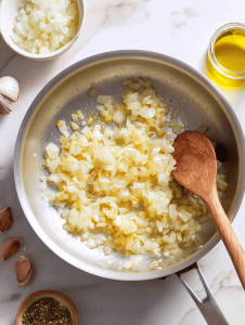 - Add diced onion to the pot and sauté until fragrant and golden, about 5 minutes. The onions should be soft and slightly caramelized, filling the air with a sweet aroma.