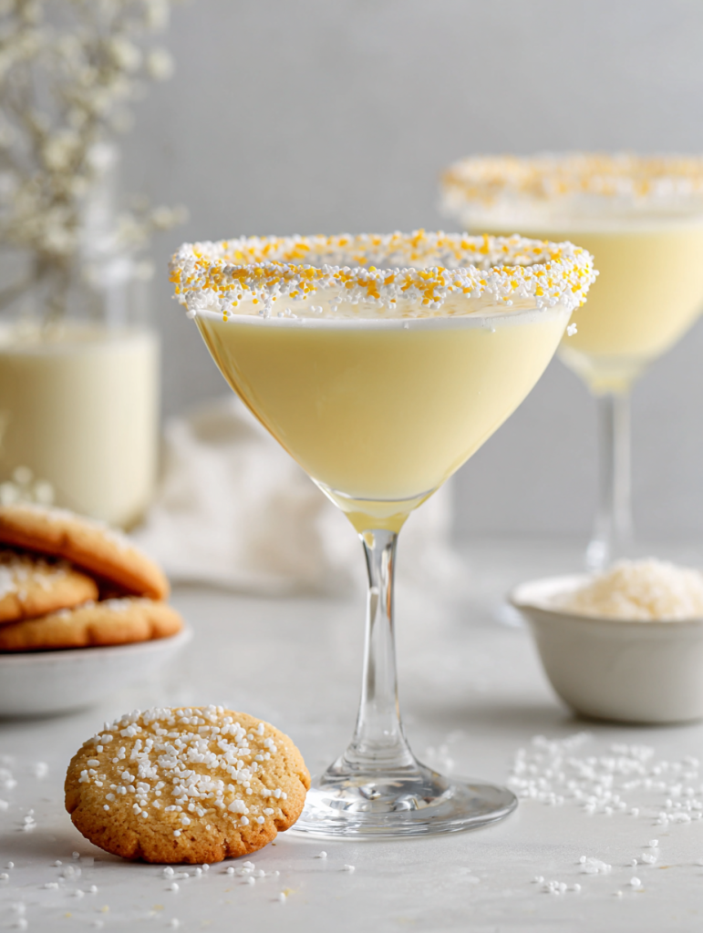 The sugar cookie martini feels like a little celebration in a glass sweet, smooth, with a whisper of vanilla and almond.
