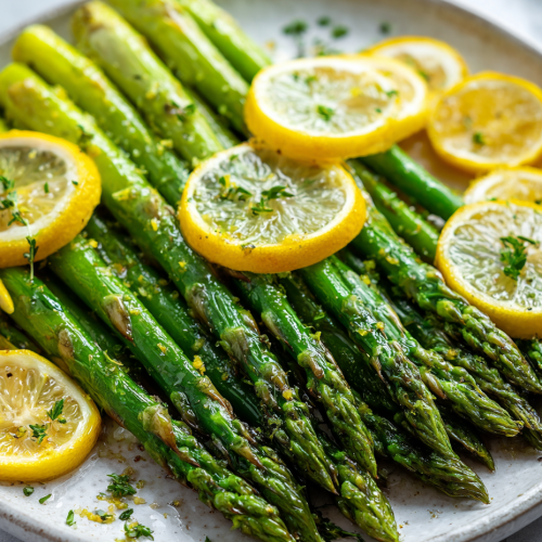 - Transfer the lemon asparagus to a serving plate. Optional: sprinkle with freshly grated Parmesan cheese or chopped herbs for extra flavor.