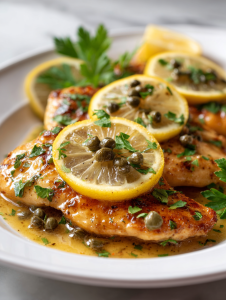 - Return chicken to pan. Spoon sauce over, add capers (2 tbsp), and thin lemon slices if using. Simmer for another 2 minutes to meld flavors. The chicken should be heated through, and the sauce bright and glossy.