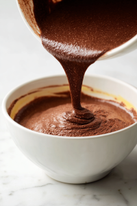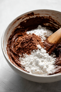 - Add Dry Ingredients: Add flour, cocoa powder, baking powder, and salt, then mix gently until just combined.