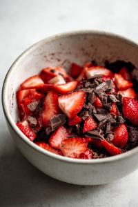 - Top (Optional): Add extra strawberries and chocolate chunks on top for a bakery-style finish.