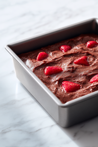 - Fold Add-ins: Fold in chocolate chunks and sliced strawberries evenly into the batter.